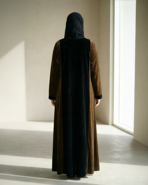 Our Sable Dusk gown, crafted in premium soft velvet, offers a luxurious warmth and a fluid, flattering drape. The rich sable brown and black color-block design adds a touch of earthy sophistication, creating a timeless silhouette that feels both grounded and glamorous. Perfect for evening galas or cozy winter gatherings, this gown ensures you look elegant, serene, and effortlessly chic.