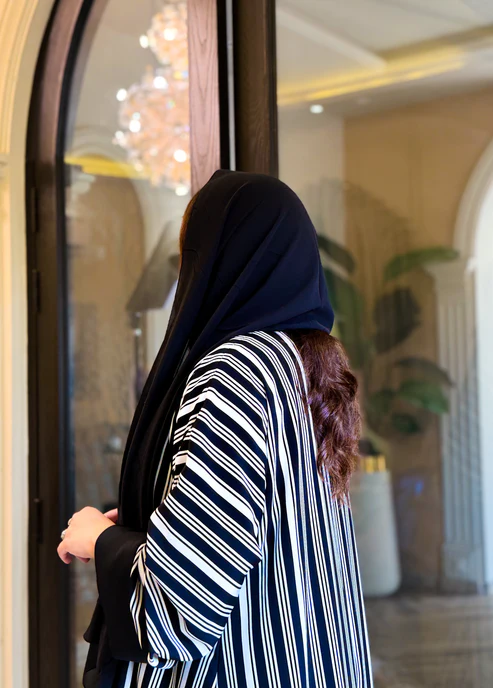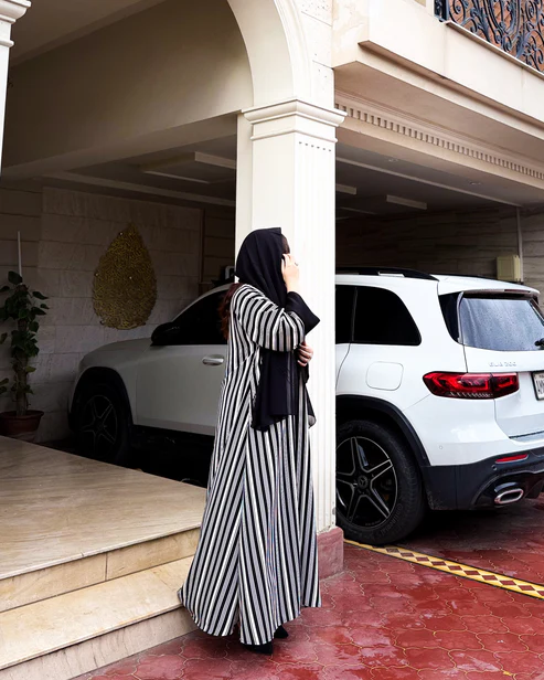 Keep it casual yet stylish with our Black & White Striped Georgette Abaya, designed for effortless everyday wear. Made from lightweight printed georgette, it offers a soft and breathable drape that’s perfect for warmer days.