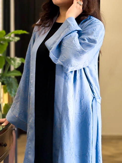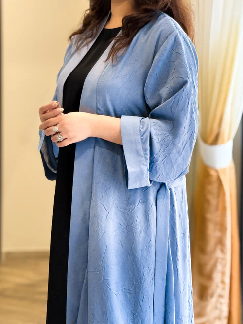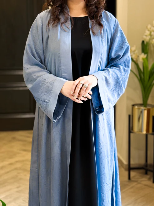 Relaxed and stylish, our Sky Blue Crushed Georgette Abaya is designed for effortless everyday wear. Made from lightweight crushed georgette, it features a naturally textured finish that adds a modern touch while keeping the look casual and breathable.